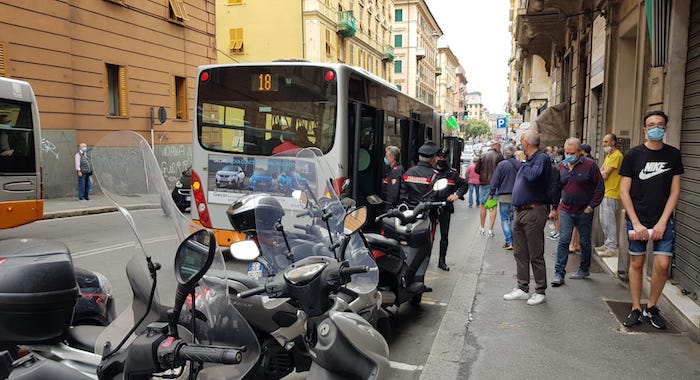 Intervento di quattro pattuglie dei carabinieri del Nucleo Radiomobile intorno alle 11,30 di oggi in via Torti a Genova.