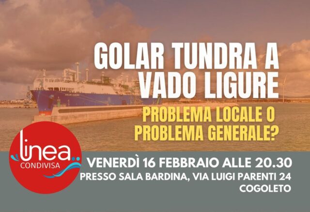 Linea Condivisa organizza un incontro sul rigassificatore al largo di Vado Ligure e, in particolare, sulla presenza della “Golar Tundra”, la nave metaniera per il trasporto del gas naturale liquefatto (GNL), a largo delle coste tra Vado Ligure e Savona.