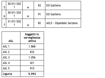 Ecco il bollettino di oggi con tutti i dati ufficiali inviati da Regione Liguria al ministero della Salute.