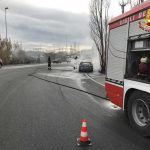 Il veicolo stava percorrendo il raccordo, quando al conducente sono state segnalate delle fiamme che uscivano dal vano motore.