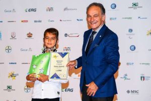 Tocca poi a Francesco Bocciardo complimentarsi con le tre stelle “green” nel Trofeo Erg: la pallanuotista vincitrice Eleonora Bianco (Locatelli Genova), la pattinatrice andorese Victoria Baldo (HP Voltri Mele) e Federico Simoncelli, in forza alla centenaria Canottieri Sampierdarenesi. Rush finale dedicato alle società nel Trofeo GeCar Citroen: Imponente Danza e Rapallo Scherma sono premiate da Renzo Balbi, responsabile di GenovaRent, e Giorgio Costa, presidente Panathlon Distretto Italia. Riccardo Serra (Gruppo Messina) consegna l’Oscar alla Virtus Sestri, Arturo Pastorelli (Fastweb) premia il Tennis Tavolo Genova.