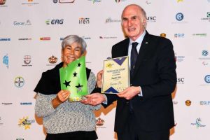 Francesco Montanella, direttore esecutivo del Gruppo Ge, incorona la centenaria Sportiva Sturla, vincitrice del Trofeo GeCar Citroen. E’ poi Caterina Giustini, in rappresentanza di Eco Eridania, a premiare l’Audax Quinto. Sfilano poi gli Junior più votati nel Trofeo Cambiaso Risso: il vincitore Aldo Roberti (CSK 1978), insieme a Filippo Rinaldi (Genova Nuoto) e Matteo Rossi (Sci Club Chamolè). Ad applaudirli Antonio Micillo, presidente Coni Liguria, ed Edoardo Stochino, campione di nuoto in acque libere con Fiamme Oro e Nuotatori Genovesi. CSK 1978 due volte felice, perchè anche la società, non solo l’atleta, riceve l’oscar direttamente dalle mani di Pietro Pongiglione, presidente dell’AMIU.