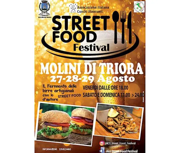 Il cibo di strada sarà protagonista a Molini di Triora da venerdì 27 a domenica 29 agosto. Orario venerdì dalle 18, sabato e domenica dalle 11 alle 24.