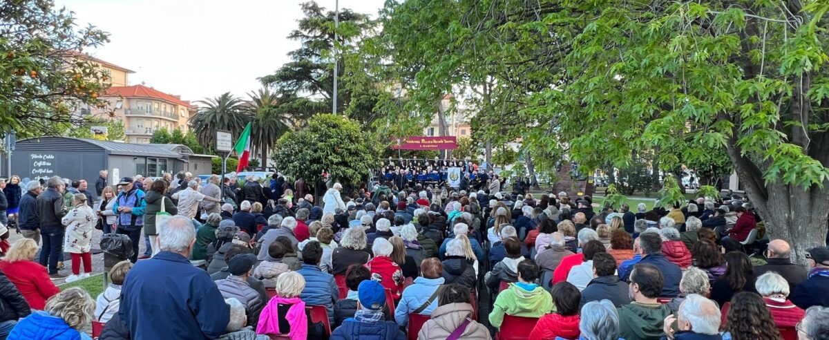 Si tratta del “Concerto della Liberazione”. Ad organizzarlo sono il Comune di Albenga, con il Comitato antifascista e di solidarietà democratica, con la collaborazione della Casa di Cura San Michele, con la FIVL (Federazione Italiana Volontari della Libertà), raggruppamento ingauno VL, con l’ANPI (Associazione Nazionale Partigiani d’Italia), con l’ANED (Associazione Nazionale Ex Deportati nei campi di prigionia nazisti), con l’Unitre Comprensoriale Ingauna, insieme al gruppo dei Familiari delle Vittime del Centa, con l’Associazione “Il 25 Aprile” di Albenga e l’Accademia Musico-Vocale Ingaunia “E.Marcelli“.