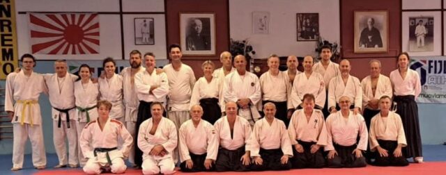 Sanremo. Si è svolto domenica a Sanremo un importante appuntamento interregionale di Aikido. Per tutta la giornata i partecipanti, gli aikidoca, sono stati formati da tre validi ed esperti maestri di questa importante arte marziale giapponese praticata a mani nude e armi bianche tradizionali del Budoo giapponese cioè la spada (ken), il bastone (Joo) ed il pugnale (tantoo). “Si è trattato- ci ha spiegato uno dei formatori Marco Daros- di un seminar regionale ed interregionale Fijlkam di Aikido organizzato dal Comitato ligure. Siamo molto soddisfatti sia per le numerose presenze provenienti da varie regioni sia per la qualità dei contenuti che ha caratterizzato il nostro appuntamento”. I partecipanti si sono radunati nella “Città dei Fiori” presso la sede dell’ASd Byakko Tai al Solaro ed hanno seguito con grande passione ed interesse il seminario. Ad organizzare l’evento la Federazione Italiana Judo Lotta Karate Arti Marziali Liguria. Le lezioni sono state tenute da tre validissimi Maestri: l’aostano Raffaele Foti, il genovese Marco Daros ed il matuziano Michele Luigi de Maria.