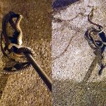 Appena fuori ha cercato nuovamente la fuga, ma è stata nuovamente bloccata in un angolo con un bastone con l’estremità a ‘v’.