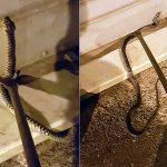 La biscia è caduta per terra e trovando uno spiraglio aperto nella porta d’ingresso, è strisciata all’interno, creando non poco panico.