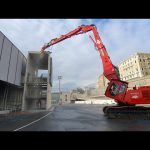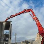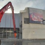 Poi sono partiti i primi colpi di benna alle strutture esterne del Palasport, in particolare le uscite di sicurezza dei piani superiori e l’abbattimento della struttura di alluminio e vetro posta vicino all’ex ristorante degli espositori del Padiglione C.