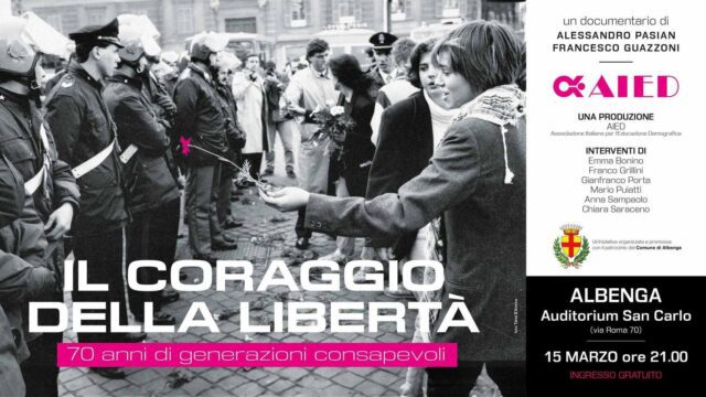 Dopo l’anteprima di Roma, in occasione dell’evento per i 70 anni dell’AIED promosso alla Biblioteca Capitolare del Senato, approderà ad Albenga il documentario “Il coraggio della libertà. Settant’anni di generazioni consapevoli”.