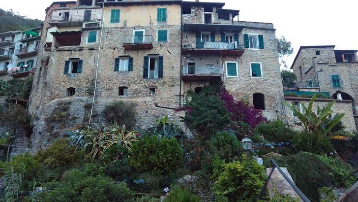 Le finestre delle case in pietra quasi si toccano e sembrano parlarsi sotto voce. Si sale e si scende ad Apricale e ci si nasconde sotto gli archi medievali del centro storico. Alziamo lo sguardo e troviamo balconi fioriti, camminiamo lungo viuzze strette di ciottoli di pietra e curiosiamo le porte di legno antico scolpite finemente. Qui il tempo sembra essersi fermato.