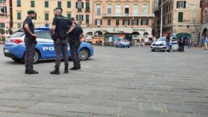 Nella piazza a fianco di Palazzo San Giorgio, è stato trovato un trolley abbandonato ( nella foto).