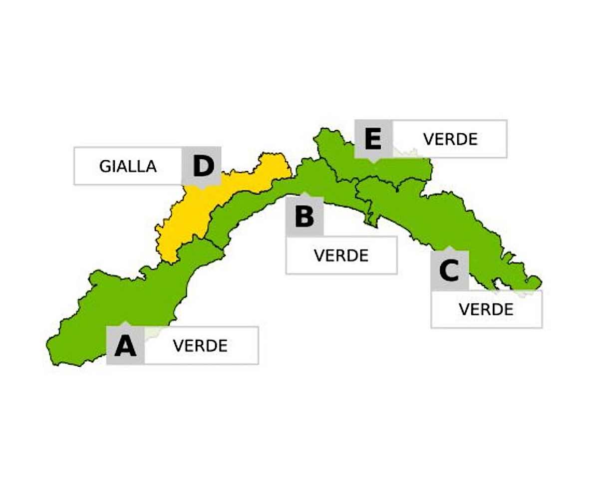 Per oggi, venerdì 21 novembre, Arpal prevede piogge intermittenti sul settore di Levante, con possibili rovesci accompagnati da grandine o neve tonda. La neve potrebbe comparire debolmente oltre gli 800-900 metri in Zona C, mentre sui versanti padani di Ponente, compresa la Val Bormida (Zona D), non si escludono deboli nevicate fino a fondovalle.