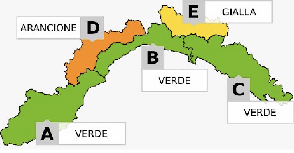 C: Lungo la costa da Portofino fino al confine con la Toscana, tutta la provincia della Spezia, Val Fontanabuona e Valle Sturla