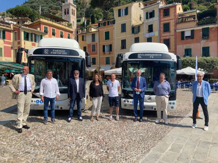 Presentati due e-bus in servizio sperimentale sulla linea 82, tra Santa Margherita Ligure e Portofino.