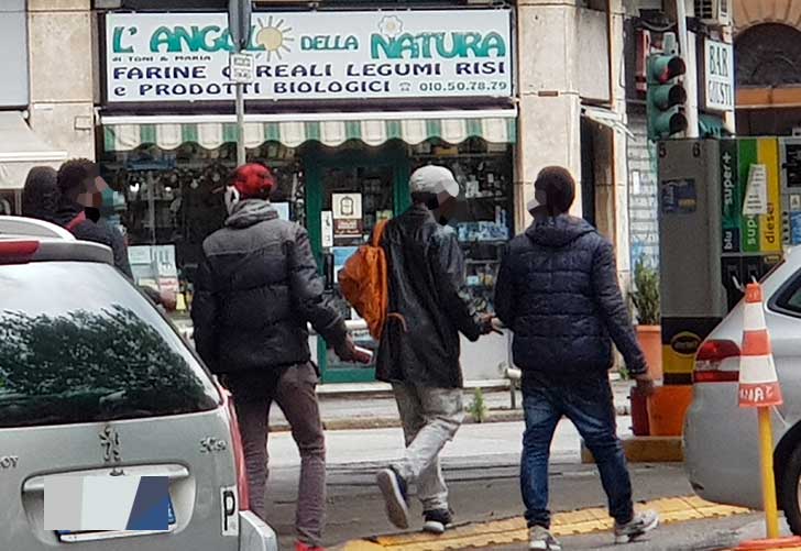 Intorno alle 14 alcuni migranti si sono ritrovati in gruppo nella zona di corso Sardegna a Genova, ossia a pochi metri dal palazzo che ospitava la sede del Corriere Mercantile e del distributore Agip.