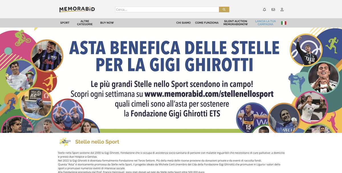 La quarta sessione dell’Asta di Stelle nello Sport resterà aperta su Memorabid fino alle 22 di martedì 9 febbraio. Il ricavato contribuirà alle attività della Fondazione Gigi Ghirotti ETS, impegnata nell’assistenza e nelle cure palliative, confermandoisando il legame tra sport e solidarietà che caratterizza l’iniziativa da oltre vent’anni.