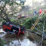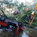 Una signora anziana ha perso il controllo della vettura, una Fiat Panda 4×4 rossa ed è finita cappottata nel ruscello adiacente.