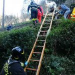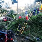 Estratta e messa sulla barella spinale dal personale sanitario è stata issata a bordo strada dai vigili del fuoco che hanno utilizzato la scala come passerella e le tecniche alpinistiche per il recupero il sicurezza.