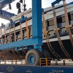 Lo scafo è stato benedetto e dopo la tradizionale cerimonia della bottiglia, andata nel migliore dei modi, è stato lentamente accompagnato in acqua da una gigntesca gru alla presenza dell’armatore e dell’amministratore delegato di Baglietto Michele Gavino, dell’architetto Francesco Paszkowski e degli invitati del cantiere.