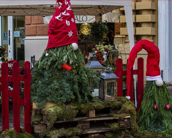 La menzione Riciclo è andata a tre negozi di piazza Mazzini – “Il Petalo”, “Tutto per la Casa”, “L’Erbolario di Gaia” – che hanno deciso di “fare squadra” attraverso un unico e grande allestimento, abbellendo un angolo della città usando principalmente materiale di recupero come pallet e rami di abete.
