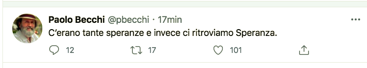 Stamane il prof. Becchi ha pubblicato un altro tweet: “C’erano tante speranze e invece ci ritroviamo Speranza”.