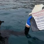 La foto di Benussi è stata apprezzata particolarmente per il suo messaggio di chiara educazione ambientale. Il sub in primo piano (vedi foto in basso) ha appena recuperato un cartello strappato dal mare qualche tempo fa dalla spiaggia della calata, in genovese “Ciazza da caladda” di Bogliasco.