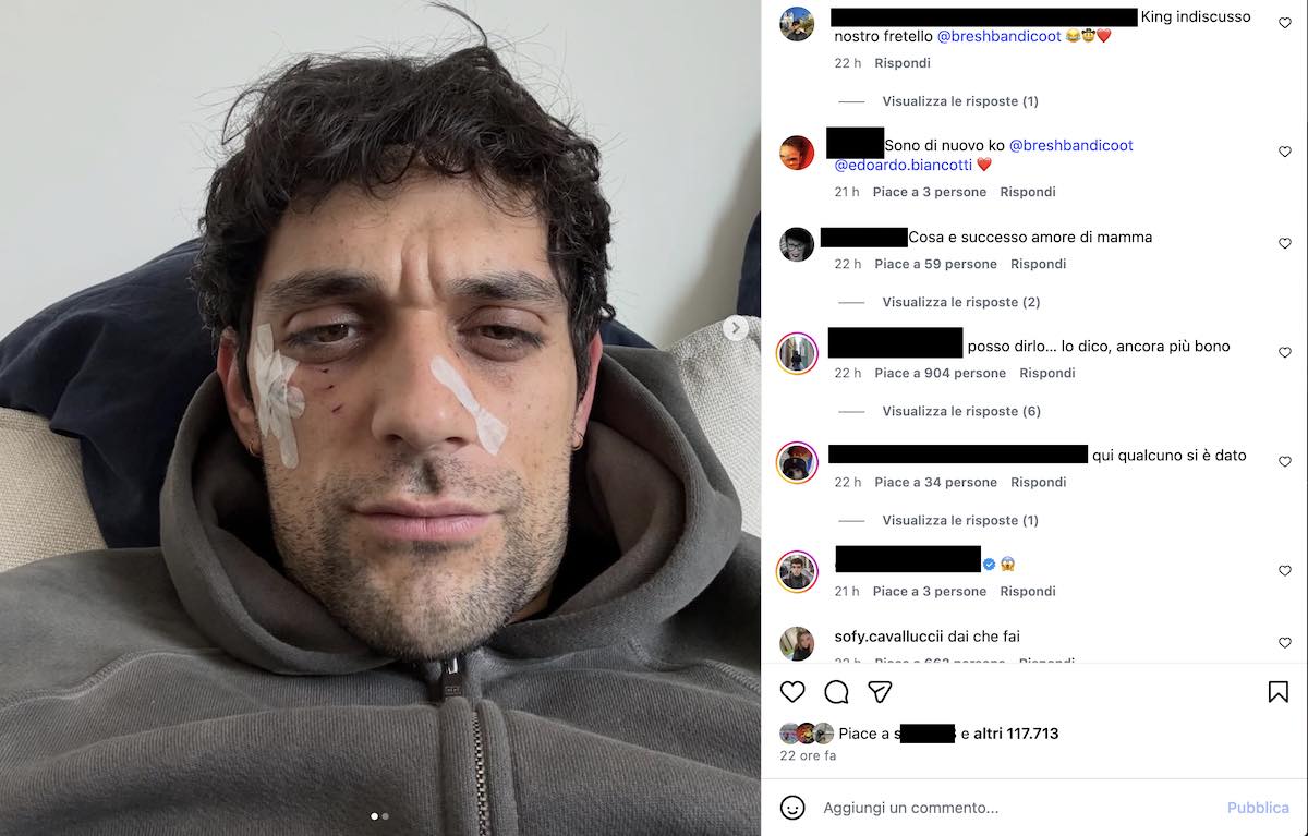Alcune fotografie pubblicate sui social hanno fatto scattare l’allarme tra i fan di Bresh. Nelle immagini, il cantautore ligure appariva con evidenti segni sul volto, alimentando timori sulle sue condizioni di salute. A chiarire rapidamente l’accaduto è stato lo stesso artista, che ha raccontato di essere rimasto coinvolto in un episodio con un cane, riportando ferite lievi.