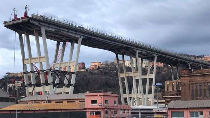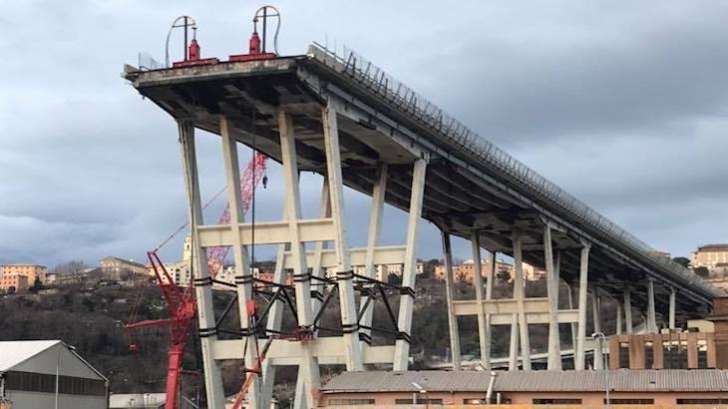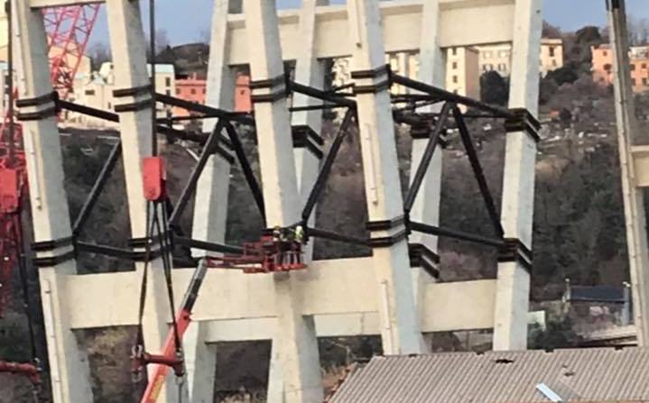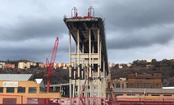 Proseguono i lavori di demolizione del Ponte Morandi. Questa mattina si sta lavorando per predisporre i cavi che serviranno per portare a terra la trave tampone del lato ovest del ponte. Operazione prevista per la fine della prossima settimana”.
