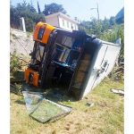 Ancora poco chiara la dinamica. Si sa che il bus è uscito di strada scivolando su una fascia ed appoggiandosi sul lato guidatore.
