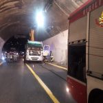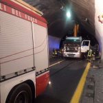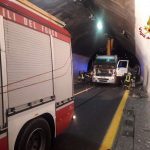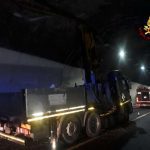 Secondo quanto riferito dai VVF, il Tir è rimasto incastrato in una galleria perché “il braccio della gru in dotazione al mezzo pesante era rimasto alzato al momento dell’ingresso in galleria”.