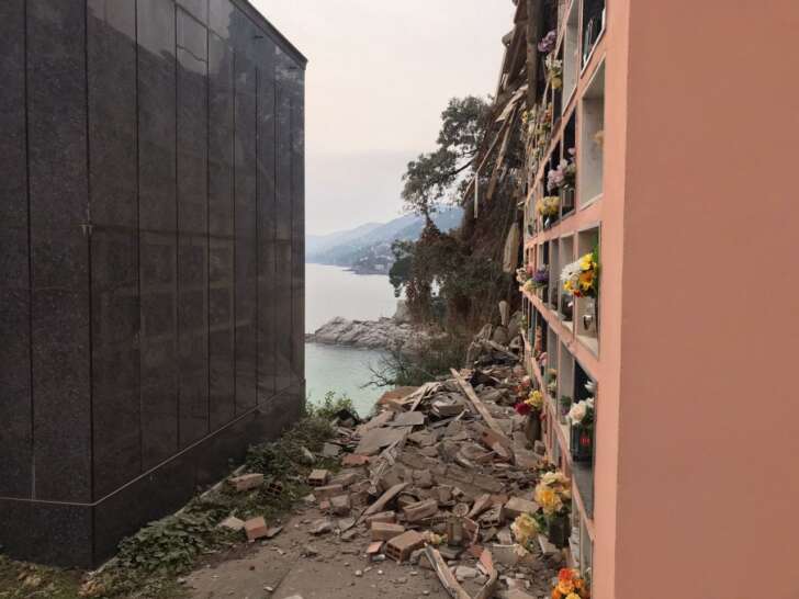 Camogli, frana porzione di cimitero: diverse bare viste galleggiare in mare