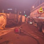 Ad effettuare il travaso è intervenuto in nucleo specialistico NBCR dei VVF di Milano che, grazie a speciali pompe adatte ad acidi e liquidi infiammabili, ha trasferito parte del prodotto in un altro autoarticolato, allo scopo di alleggerirla e poter lavorare nei limiti di portata della gru dei vigili del fuoco.