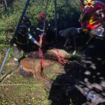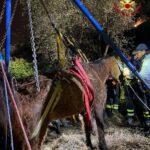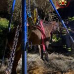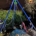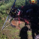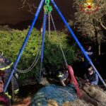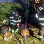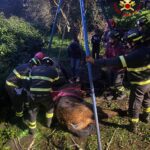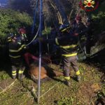 I Vigili del Fuoco hanno così provveduto a mettere in sicurezza l’animale e, in accordo con il veterinario, hanno deciso di alzarlo grazie ad uno speciale treppiede.