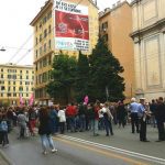 Saranno circa 180 le persone che dopo aver bloccato corso Buenos Aires all’altezza della chiesa di Santa Zita, stanno effettuando un presidio nei pressi del manifesto antiabortista dell’associazione ProVita.