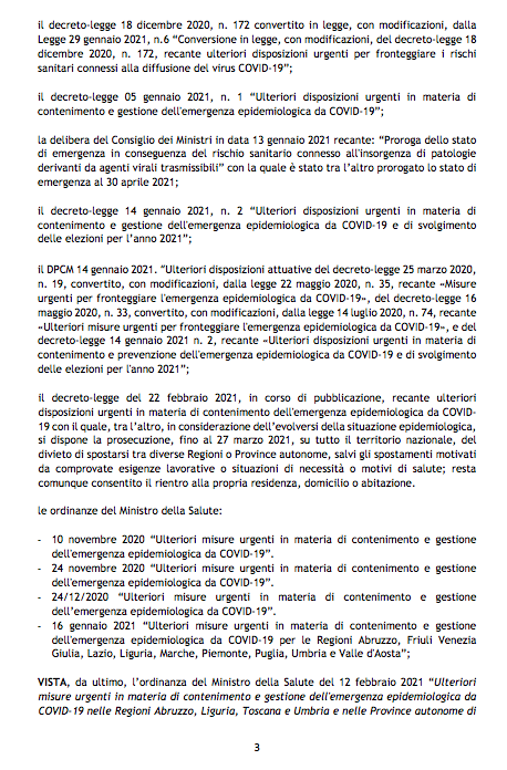 Si tratta di provvedimenti più restrittivi, consentiti dalla normativa nazionale, rispetto a quelli già in vigore emanati dall’Iss-Ministero della Salute, che entrano in vigore da domani fino alle ore 24 di venerdì 5 marzo.