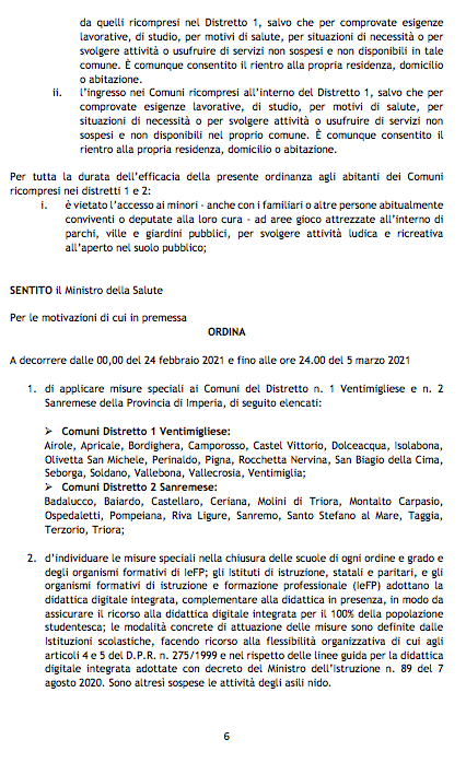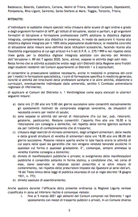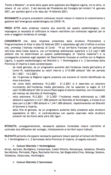 Covid, area rossa nell’Imperiese: ecco il testo originale dell’ordinanza di Toti
