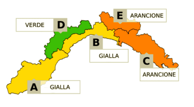 GIALLA PER TEMPORALI DALLE 6 DI DOMANI SU A-B-C-E, ARANCIONE DALLE 8 DI DOMANI SU C-E (PRIMA SU BACINI PICCOLI E MEDI, DALLE 10 ANCHE SUI GRANDI).