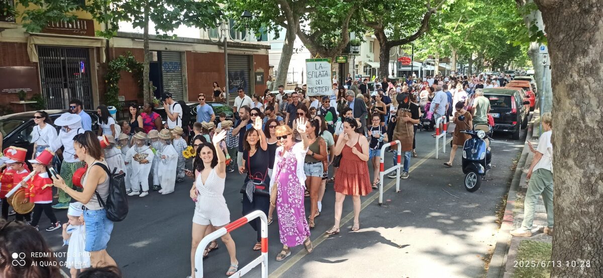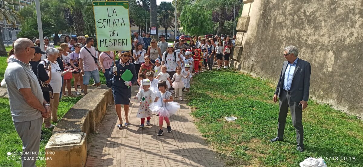 Albenga. Grande successo per la festa di chiusura delle attività della Scuola dell’Infanzia Ester Siccardi. Centinaia i genitori, parenti ed amici che hanno seguito i bambini delle varie classi nella sfilata che ha preso il via in Piazza Europa e si è conclusa al mare in piazza De Andrè. Ad accompagnare i bimbi nella sfilata, dedicata quest’anno ai Mestieri, la Banda Città di Albenga. Giunti in piazza De Andrè si è svolta la tradizionale recita di fine anno che ha visto impegnati in cinque canzoni tutti i bambini iscritti alla scuola: “Quest’anno – ci spiega la direttrice Elisa Esposito- abbiamo approfondito il valore del Lavoro e di tutti i mestieri di oggi e di ieri. Per questo abbiamo deciso di passeggiare in corteo da Piazza Europa a Piazza De Andrè, sfilando con abiti che rappresentano le diverse categorie di lavoratori, preceduti dalla Banda. Una volta giunti in Piazza si è svolta l’esibizione dei bambini”. Alla realizzazione dell’evento hanno collaborato oltre alle maestre ed al personale anche il direttivo della scuola, formato da Elisa Ghione, Francesca Damonte, Chiara Pavesio e Ginetta Perrone e guidato da Ivano Carrara, e la pedagogista Stefania Trifilio.