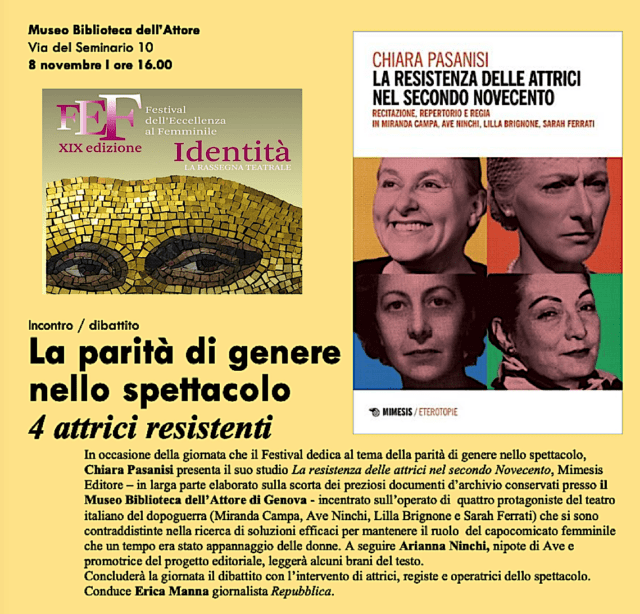 Pasanisi presenta il suo studio “La resistenza delle attrici nel secondo Novecento” (Mimesis Editore).