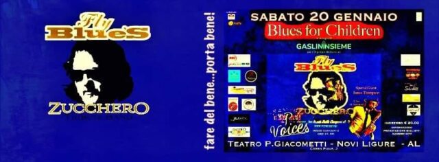 Si annuncia una serata spettacolare a favore della Fondazione Gaslini per l’ospedale dei bambini! dal titolo Fly Blue’s Tributo a Zucchero + Coro P-Voices + Scuola di Danza Showlab + James Thompson, il tutto accompagnato dal suono magico e “dolente” del Sax di Zucchero. “Un bello spettacolo per fare del bene! …e FARE DEL BENE PORTA BENE!” – affermano con orgoglio gli organizzatori.