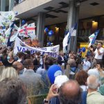 Alcuni contestatori (circa un centinaio) dei centri sociali e dell’aria antagonista hanno tentato di raggiungere la piazza, ma sono stati bloccati dalla Polizia e hanno protestato a debita distanza urlando “Salvini merda”, “Salvini bastardo”, “Leghisti ladri” e altri insulti.