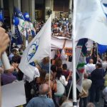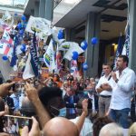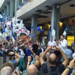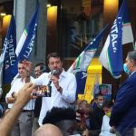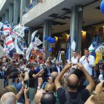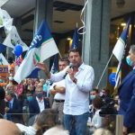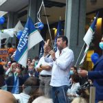 Sul palco sono saliti anche esponenti di Fratelli d’Italia, Forza Italia, Lista Toti.