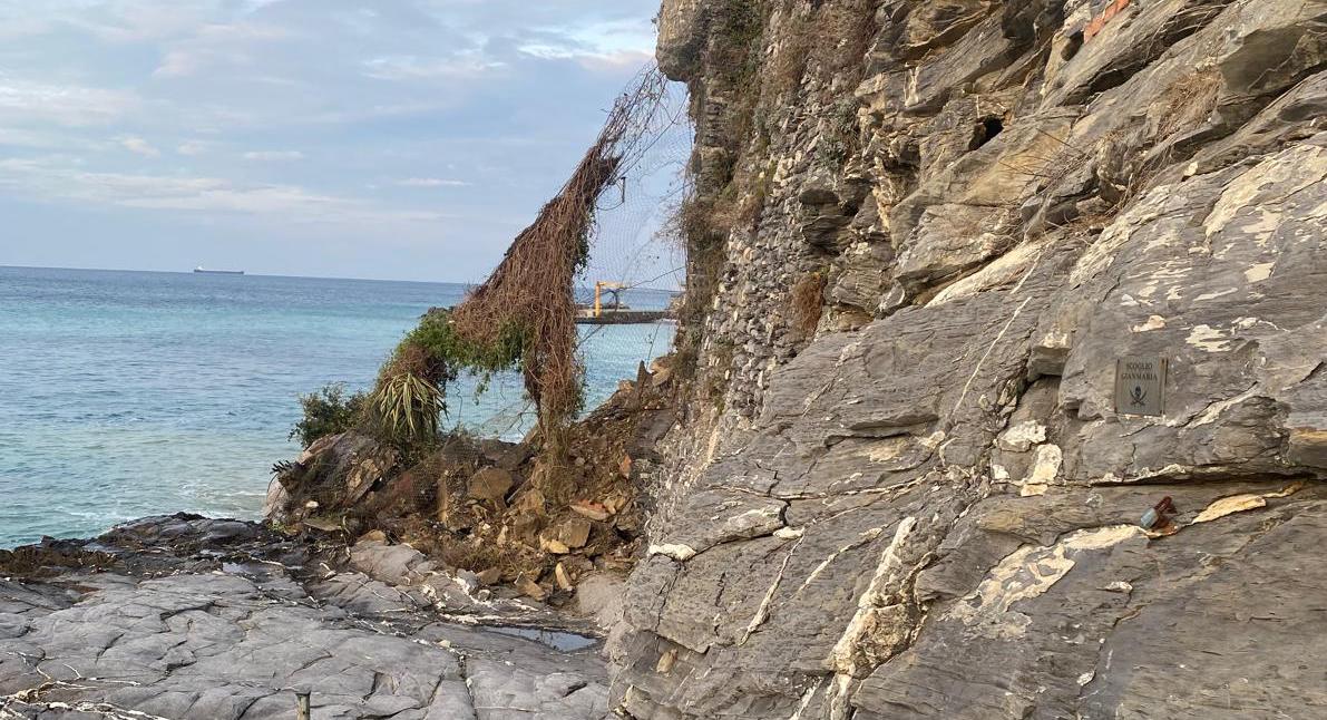 Frana a Bogliasco, crolla parte della falesia in zona Peruzzi