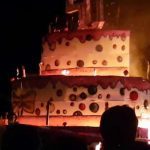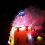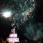Splendidi fuochi artificiali ieri sera a Camogli con i due falò con la rappresentazione di una torta per il 50esimo della tradizione.
