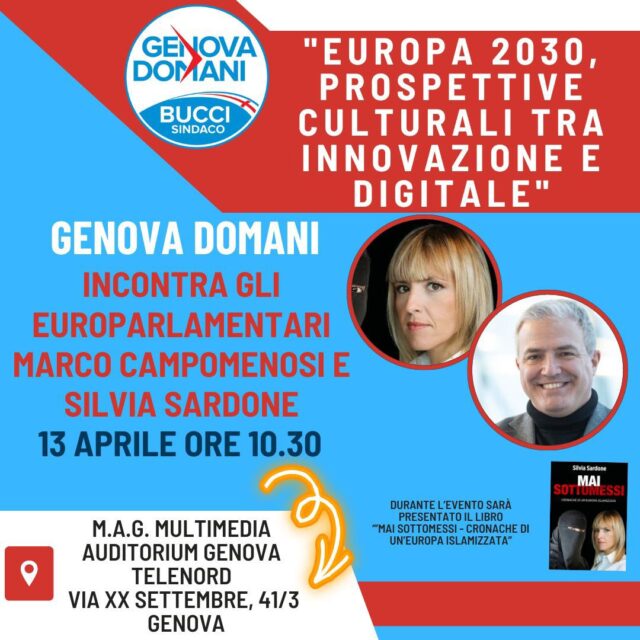 Domani alle 10.30 presso il M.A.G Multimedia Auditorium Genova Telenord in via XX Settembre 41/3 è in programma l’incontro organizzato da Genova Domani con l’europarlamentare Silvia Sardone (Lega).
