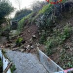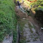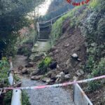 I Vigili del Fuoco stanno intervenendo in via Canova, per una frana che si è abbattuta su una via pedonale, unico accesso ad un gruppo di case dove risiedono cinque famiglie.