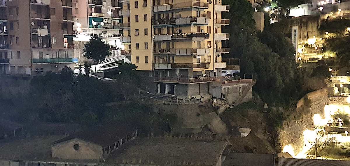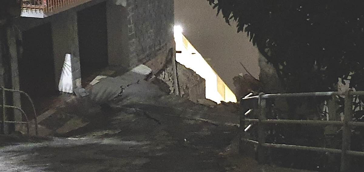 Il distacco ha coinvolto porzioni di calcestruzzo e terreno, scivolate verso valle lungo il fronte già considerato instabile. L’episodio ha riacceso l’attenzione su una situazione di fragilità strutturale che aveva portato all’evacuazione preventiva dello stabile sovrastante.