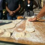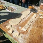 La preparazione: Impastate la farina, l’acqua, l’olio e il sale. Possibilmente il giorno prima sbollentate la zucca tagliata a pezzetti e, una volta scolata e raffreddata, strizzatela ben bene per poi passarla al passa verdure grosso. Nella versione del ripieno con i fagiolini, farli bollire e passarli nel passaverdura insieme alla zucca. Cuocere il riso in latte e acqua. In una terrina amalgamate il riso, i formaggi, la purea di zucca (e di fagiolini), il sale, il pepe, l’uovo e la maggiorana.