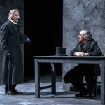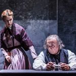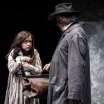 Tra i punti di forza di questa versione teatrale de I miserabili, oltre a una riscoperta attualità dei temi – i nuovi emarginati, i nuovi poveri – propria dei classici, ci sono sicuramente: la sobrietà delle scene di Domenico Franchi, costituite da pochi elementi, paratie e pannelli scorrevoli, e da una dominante neutra di colore grigio, che non distrae ma astrae dalla storia, permettendo di immaginare il contesto descritto; la capacità (miracolosa) di rendere viva una Rivoluzione e credibile una folla scesa in piazza, movimentando soltanto una decina di persone sul palcoscenico; l’aver posto al centro di tutto una narrazione per antonomasia, epica e tragica, e aver saputo trasmettere il pensiero etico di Victor Hugo, che sopravvive, nonostante una legge non infallibile, anche nelle ultime parole del (miserabile) Jean Valjean: “Amatevi sempre, al mondo non c’è che questo”. (foto: Linda Kaiser e Simone Di Luca).