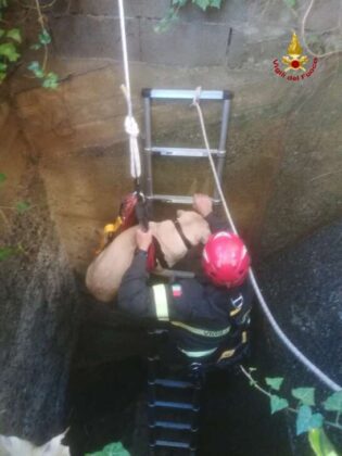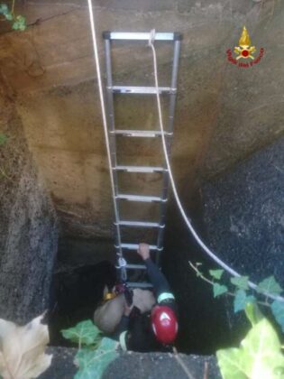I soccorritori SAF (Speleo Alpino Fluviale) dei Vigili del fuoco hanno posizionato una scala e grazie ad un imbragatura hanno issato i due animali consegnandoli alle cure dei padroni, uno indenne e l’altro leggermente ferito.